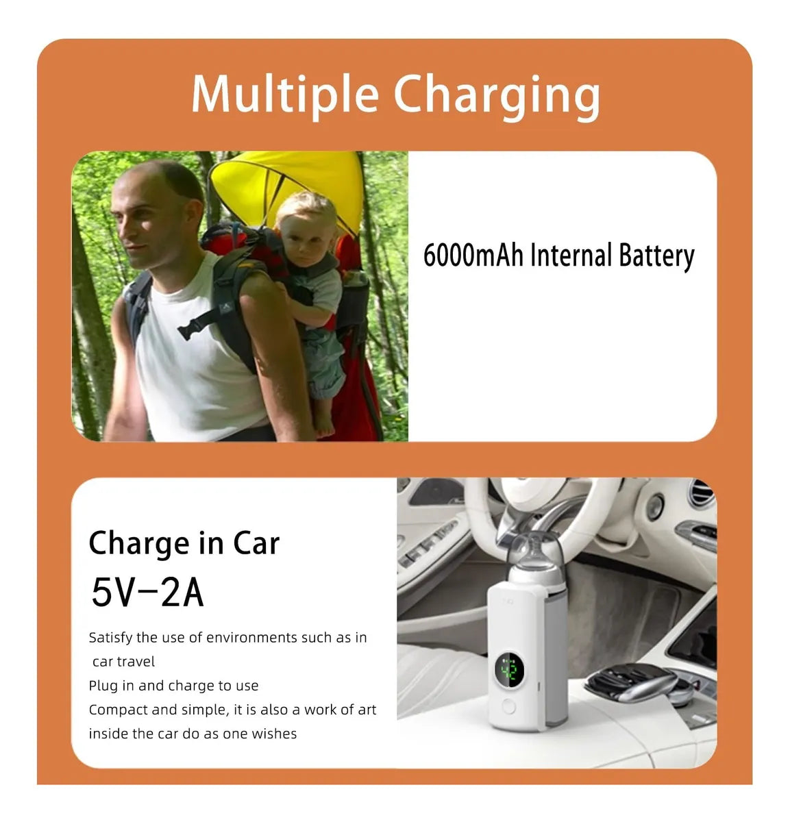 Este calentador portátil inteligente de mamaderas fue creado para acompañarte en los momentos en que tu bebé tiene hambre y no puedes esperar. Gracias a su sistema de calentamiento eficiente y su pantalla digital, puedes llevar la leche a la temperatura ideal de forma segura y controlada, estés en casa, de paseo o de viaje.